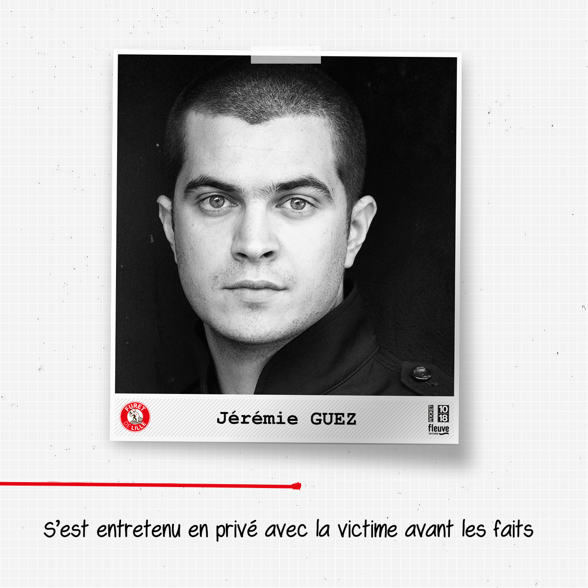 Les 7 auteurs/suspects : Franck Thilliez, David-James Kennedy, Hervé Commère, Olivier Norek, Paul Colize, Nadine Monfils et Jérémie Guez