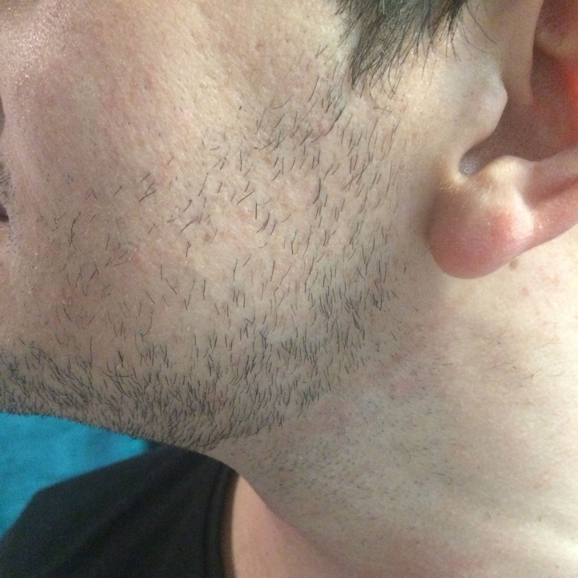 Passons à la partie « sans sabots » ! Comme tu peux le voir juste au dessus, j’ai fait mon contour de barbe sans sabots ! Là aussi, le test est plutôt concluant ! Aucune irritation ! (Alors que le bon vieux rasoir 3 lames me laisse toute une petite famille de boutons !)