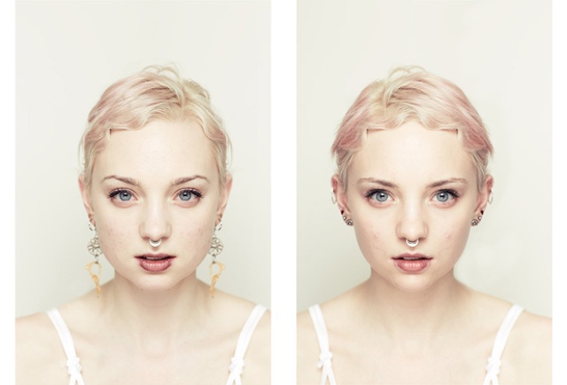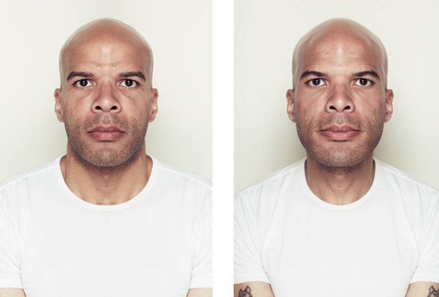 Mais bon, comme c’est toujours un peu délicat à expliquer par écrit, je te présente aujourd’hui, Alex John Beck, un artiste qui démontre cette théorie au travers plusieurs photos puis modifications Photoshop. Cet artiste prend un portrait qu’il découpe en 2 parties puis il s’amuse à reconstruire la face complète du sujet avec ses deux côtés gauches puis, ses deux côtés droits. (T’as compris ? En fait, il travaille sur l’asymétrie du visage quoi).
