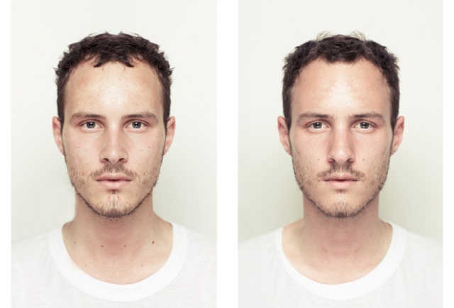Mais bon, comme c’est toujours un peu délicat à expliquer par écrit, je te présente aujourd’hui, Alex John Beck, un artiste qui démontre cette théorie au travers plusieurs photos puis modifications Photoshop. Cet artiste prend un portrait qu’il découpe en 2 parties puis il s’amuse à reconstruire la face complète du sujet avec ses deux côtés gauches puis, ses deux côtés droits. (T’as compris ? En fait, il travaille sur l’asymétrie du visage quoi).